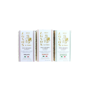 Scatola regalo elegante bordeaux con adesivo con 8 confezioni di Riso Carnaroli Classico Agnos da 500 g a mattonella sottovuoto miste: